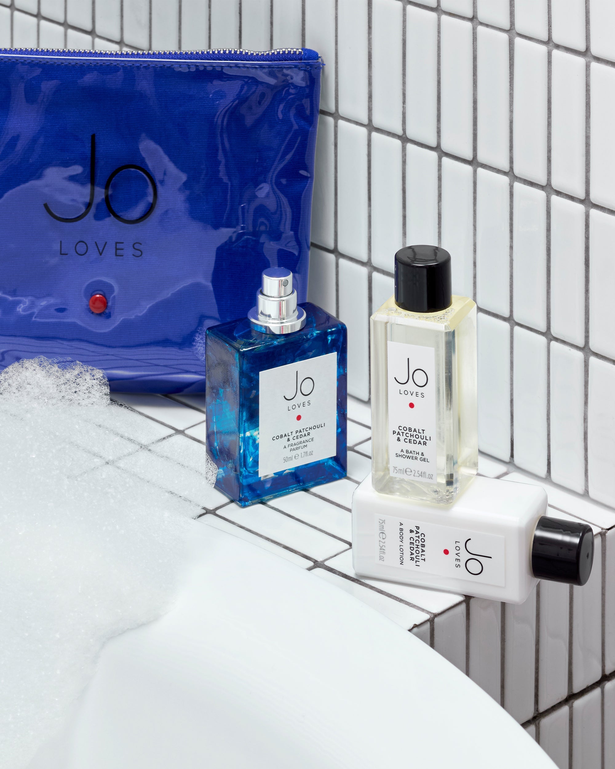 Experience the essence of luxury travel with the Jo Loves Cobalt Patchouli & Cedar Luxury Travel Collection. This set includes our iconic scent Cobalt Patchouli & Cedar A Fragrance 50ml, A Bath & Shower Gel 75ml and A Body Lotion 75ml, all conveniently packed in an exclusive Jo Loves travel bag. Indulge in the captivating scent of Cobalt Patchouli & Cedar with powerful base notes and a unique intensity. Discover the story behind this scent, a reminder of hope, resilience, and the pursuit of happiness, as you embark on your own blue sky adventures.