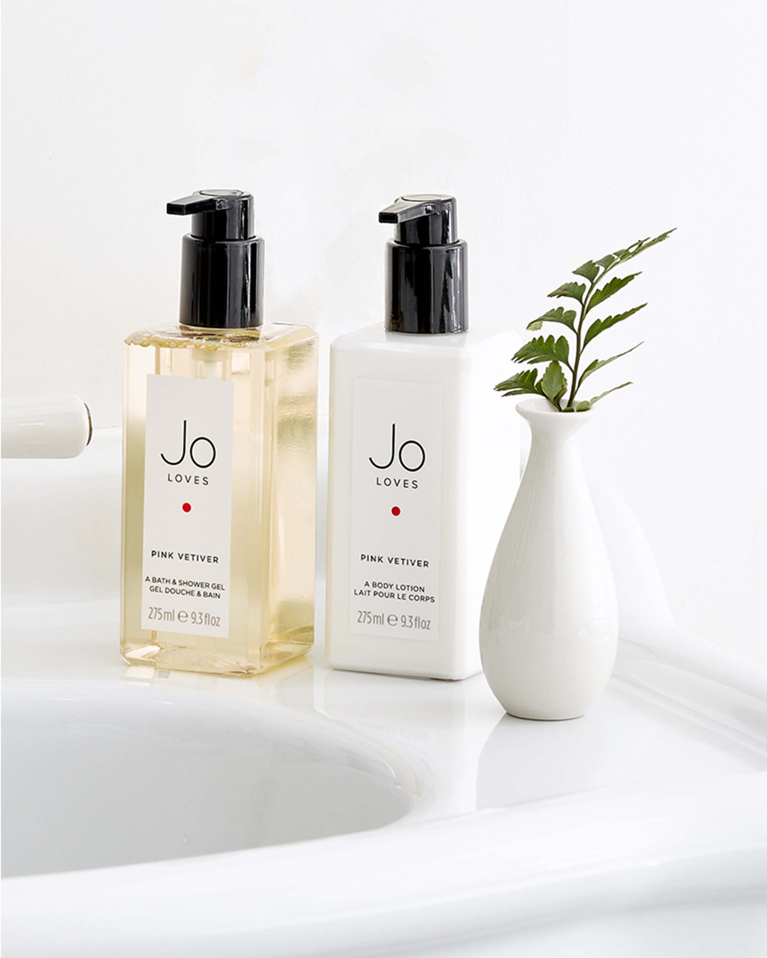 Indulge in Jo's Pink Vetiver Body Lotion, a captivating blend of her beloved Paris scents - blossom, spice markets, and the unmistakable vetiver reminiscent of her father's chesterfield suit, infused with a contemporary twist of pink peppercorn; nourish your skin with cocoa butter, almond, and grape seed oils while enveloping yourself in this alluring fragrance.