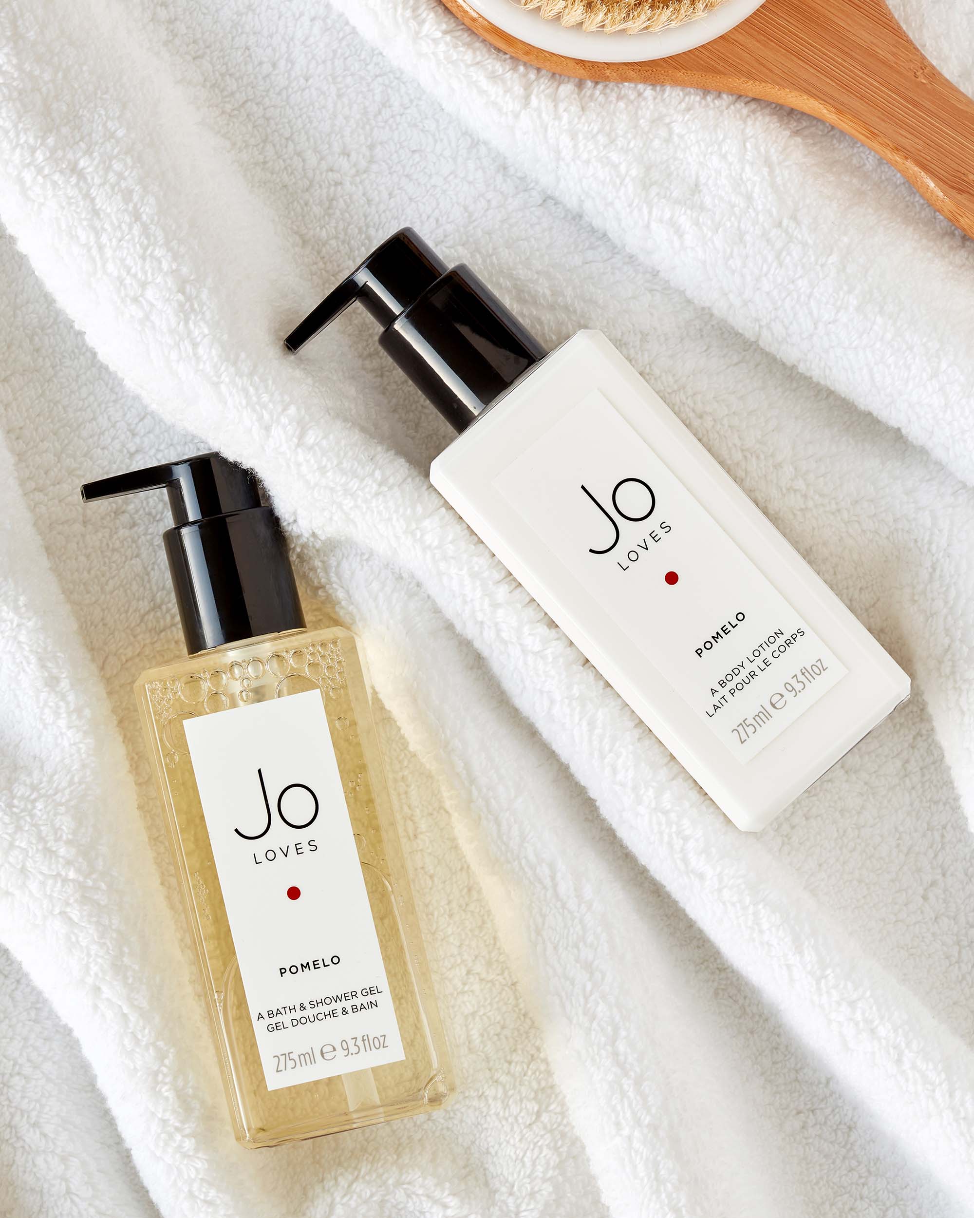 Experience the ultimate indulgence with Jo Loves Pomelo Bath & Shower Gel and Body Lotion Duo. The Bath & Shower Gel, inspired by sun-kissed beaches, gently cleanses and nourishes your skin with its luxurious formula, leaving behind a captivating blend of rose, pomelo, vetiver, clove, patchouli, and suede. Let the scent transport you to your own personal paradise, where creativity and relaxation intertwine. Complement your bathing ritual with the Pomelo Body Lotion, a luxurious blend of pomelo, rose, vetiver, clove, patchouli, and suede notes. Infused with cocoa butter, almond, and grape seed oil, this nourishing formula leaves your skin soft, radiant, and delicately scented with the essence of sun-drenched beaches and whispers of inspiration.